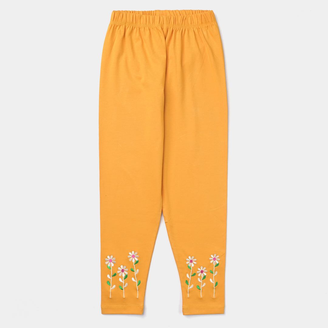 Girls Lycra Jersey Embrioded Tights Flowers-C.Yellow