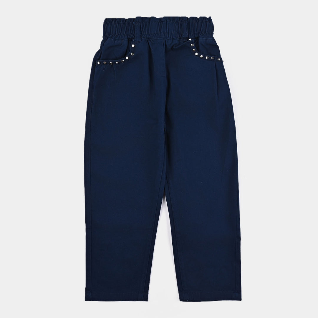 Girls Cotton Twill Pant Hearts & Studs-Navy Blue