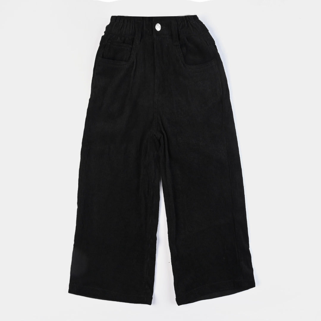 Girls Corduroy Cotton Pant Fancy Button-BLACK