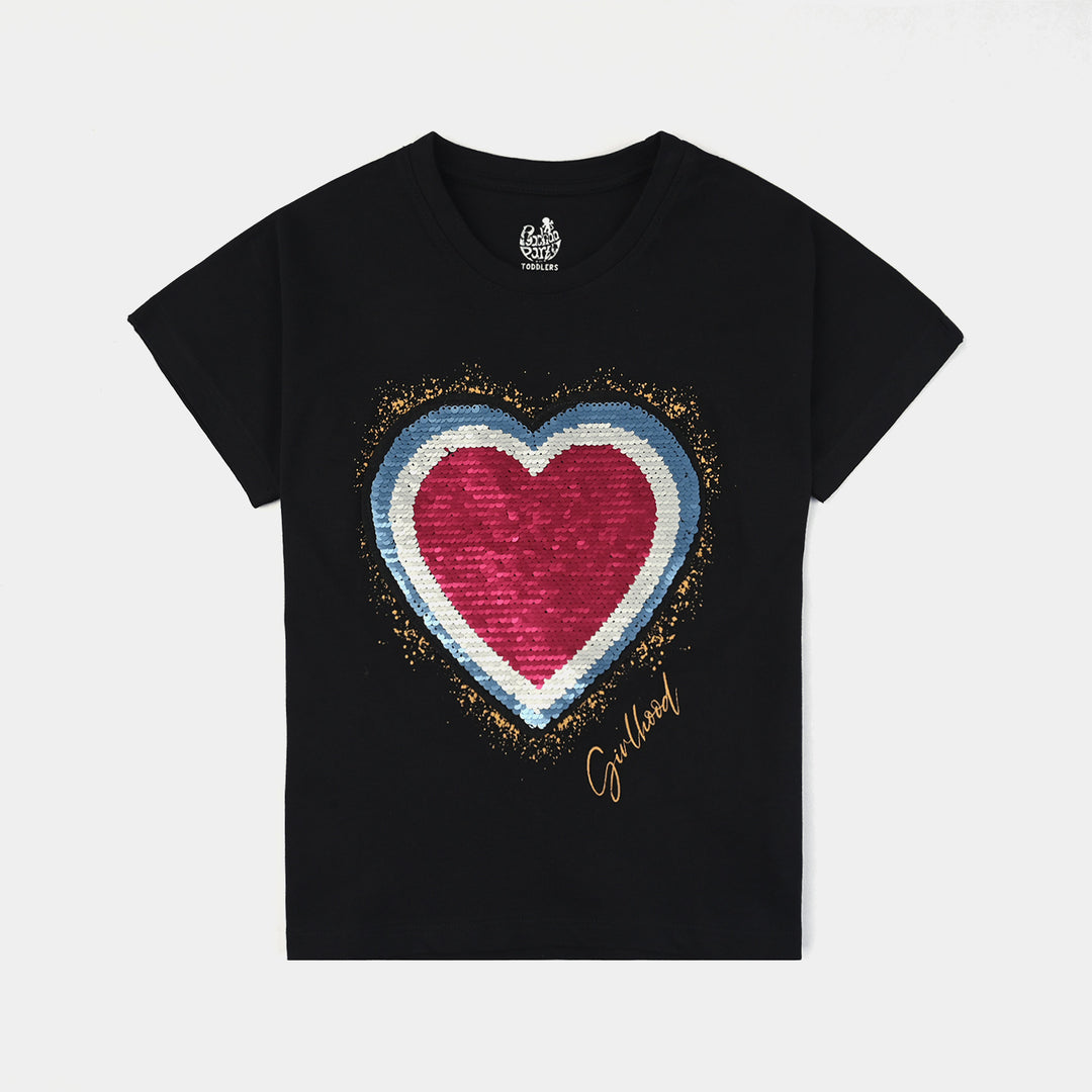Girls Cotton Jersey T-Shirt H/S Hearts-BLACK