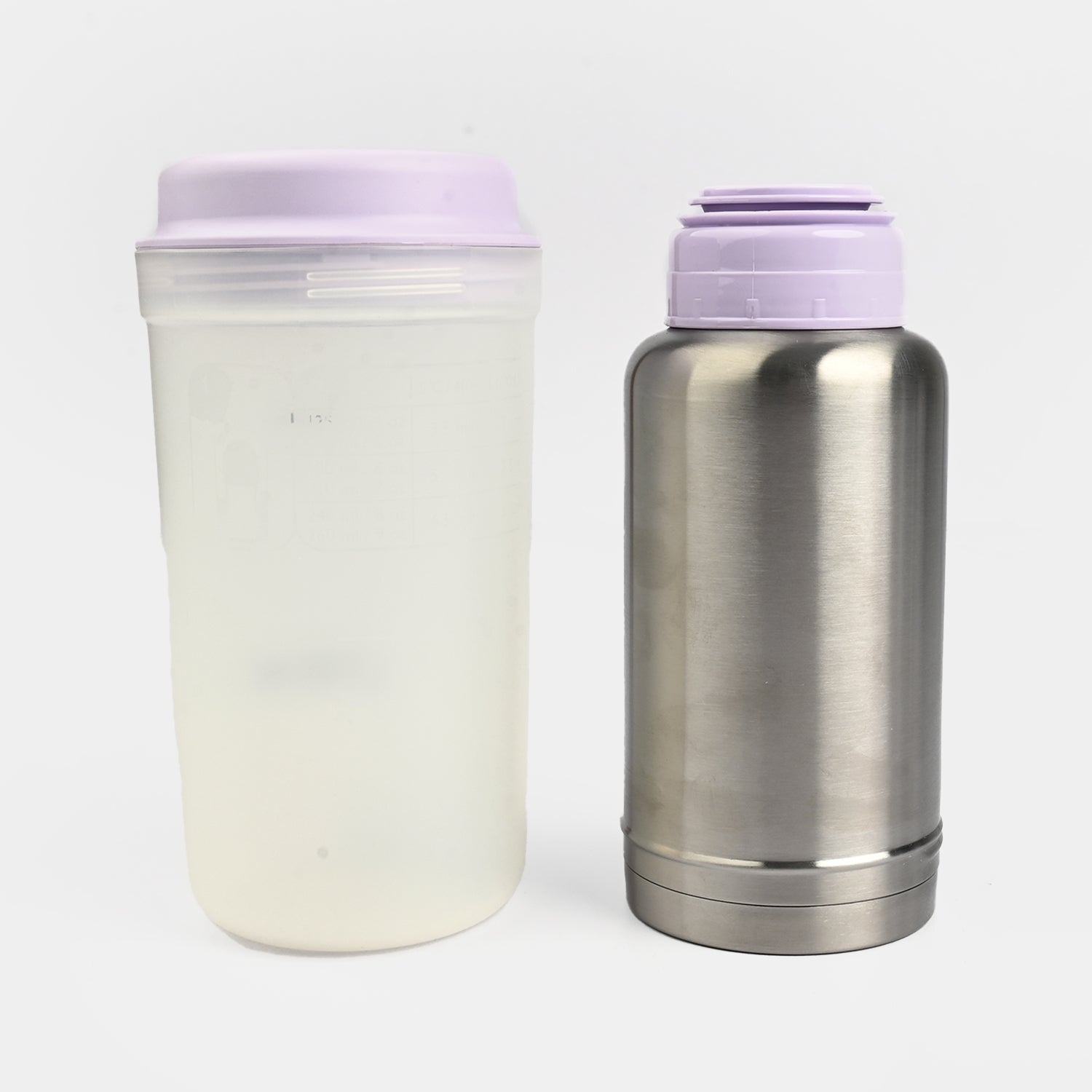 Heat up multiple bottles with hot water from one pre-filled thermal flask (500 ml).