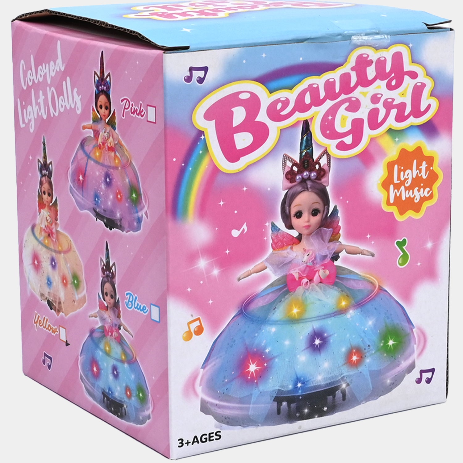 Watch the magic unfold as this beautiful princess lights up, spins, and enchants! With universal rotating wheels, she glides across the floor, lighting up every room with her dazzling dress and sweet melodies.