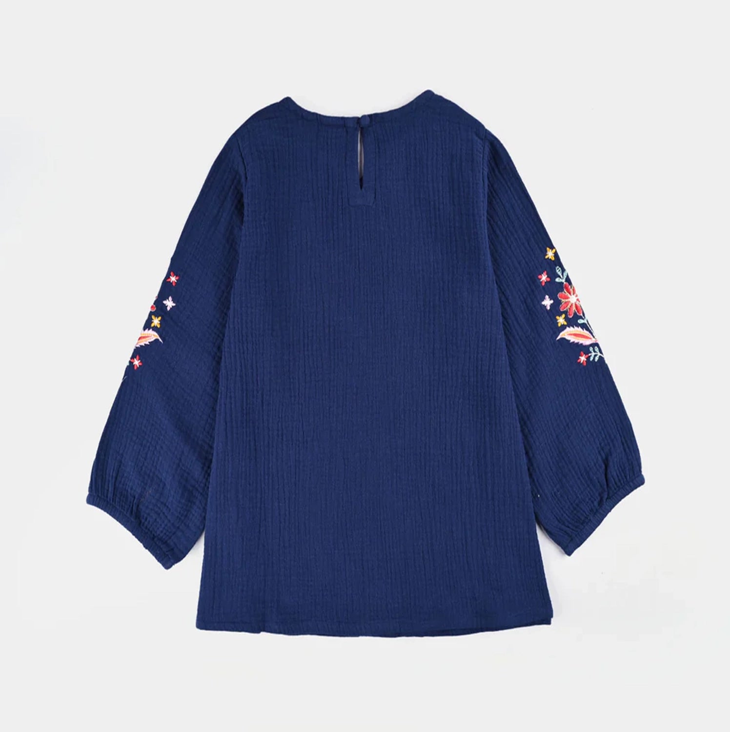 Bachaa Party brings you the best price Girls Cotton EMB Top Bouquet-Navy Blue with express shipping all over Pakistan.