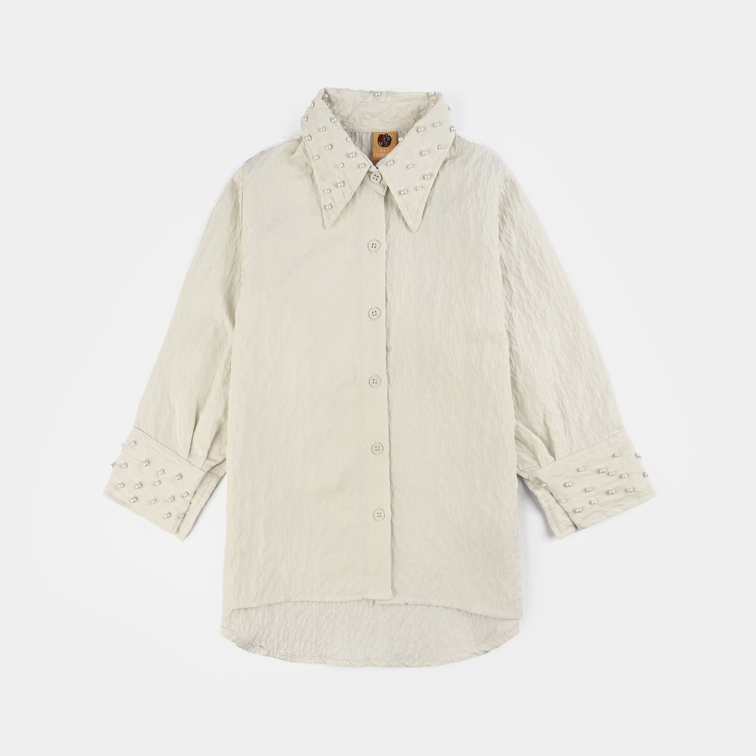 Bachaa Party brings you the best price Girls Poly Crinkle Emb Top Purple Flower-White with express shipping all over Pakistan.