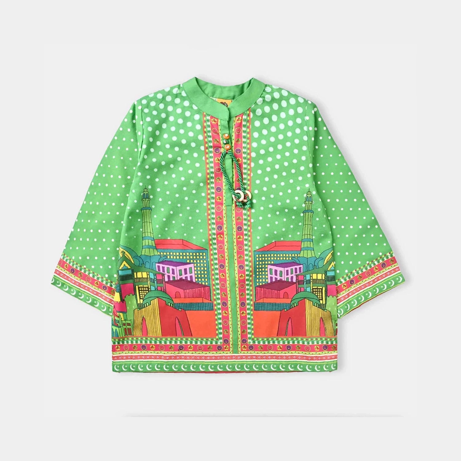 Bachaa Party brings you the best price Girls Cotton Poplin IND Top Retro-Green with express shipping all over Pakistan.