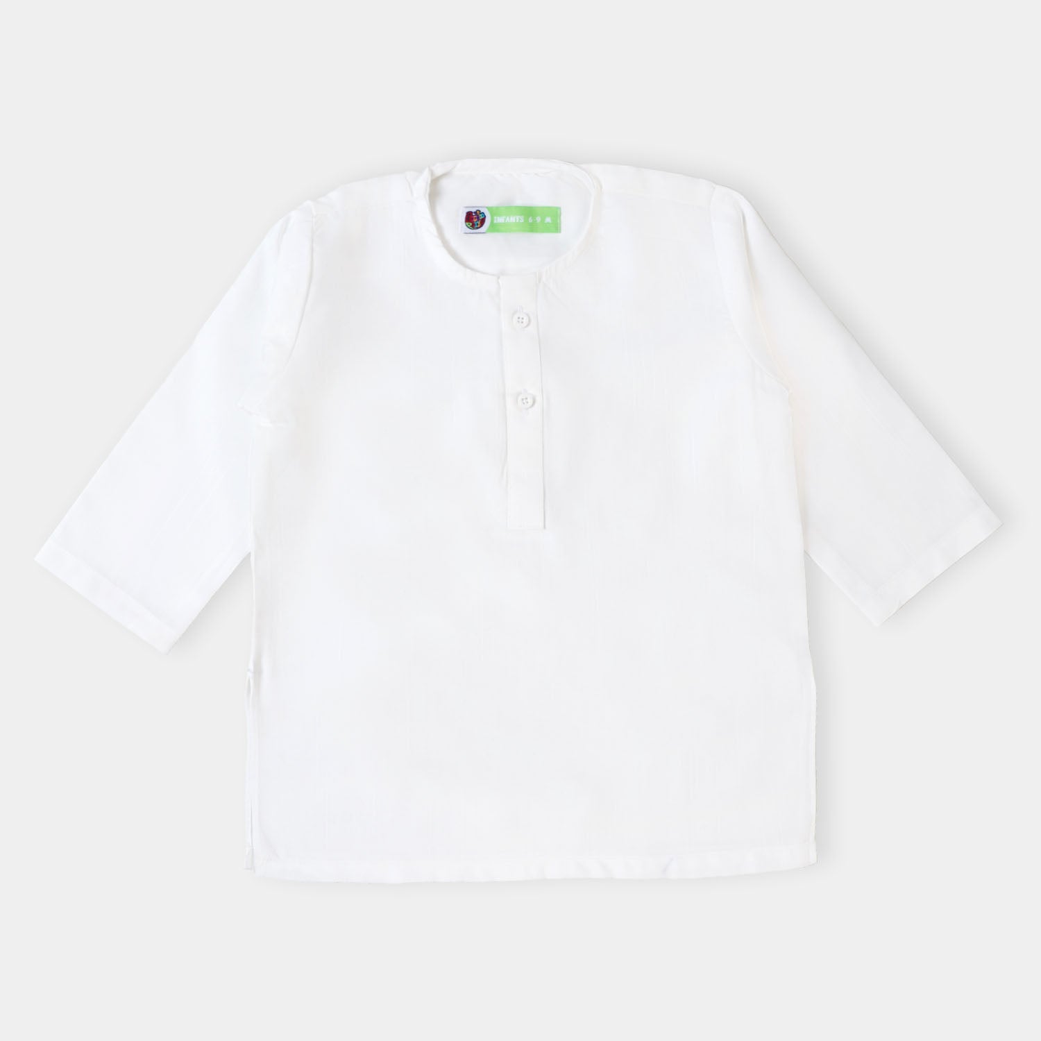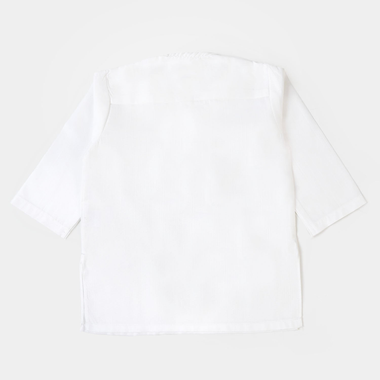 Usher in Independence Day in style with our 3-piece white poly-viscos Kurta Pajama suit for boys. Crafted from breathable fabric, this suit ensures your little one's comfort throughout the day's celebrations. The ensemble's white hue symbolizes purity, perfectly matching his innocence.