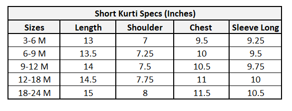 SIZE CHART NOTE: Please allow 0.5 inch +/- tolerance due to manual measurement