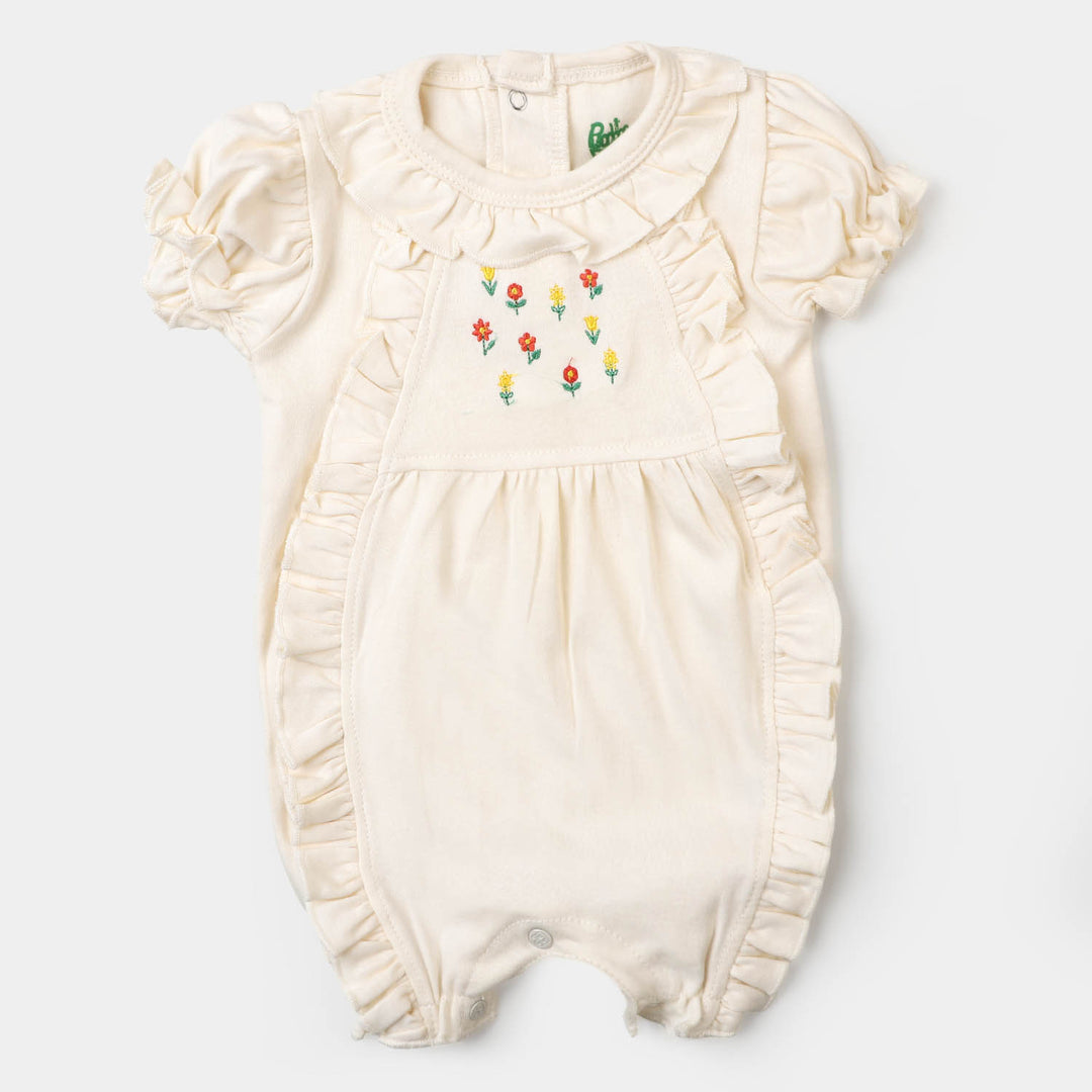 Infant Girls Knitted Romper Flower Emb - Light Cream
