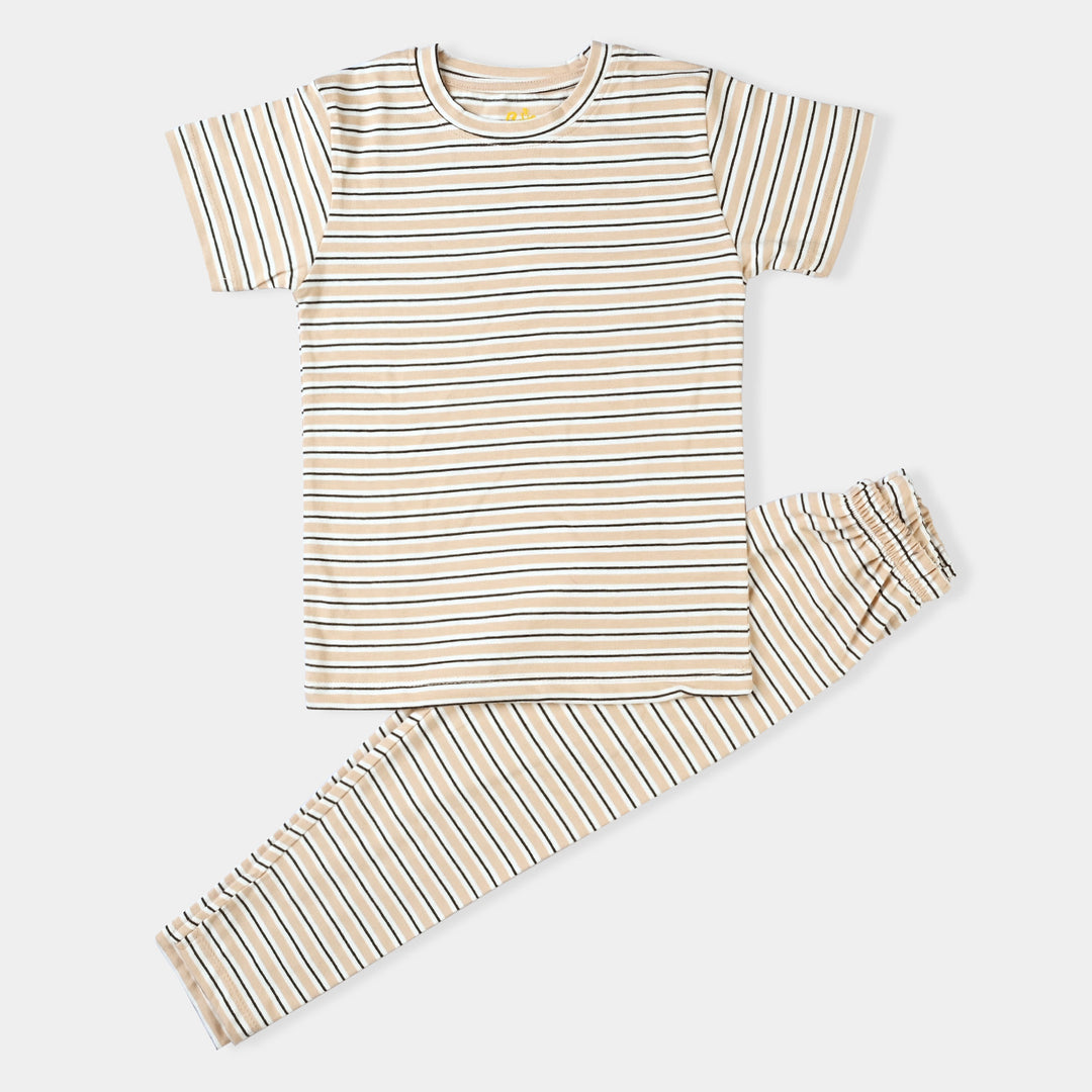 Boys Cotton Jersey Knitted Night Suit Yarn Dyed-Sand