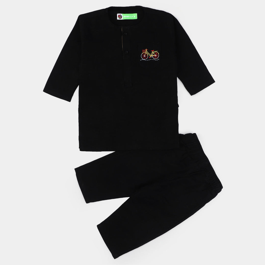 INFANT BOYS khaddar EMBROIDERED KURTA PAJAMA SUIT- BLACK