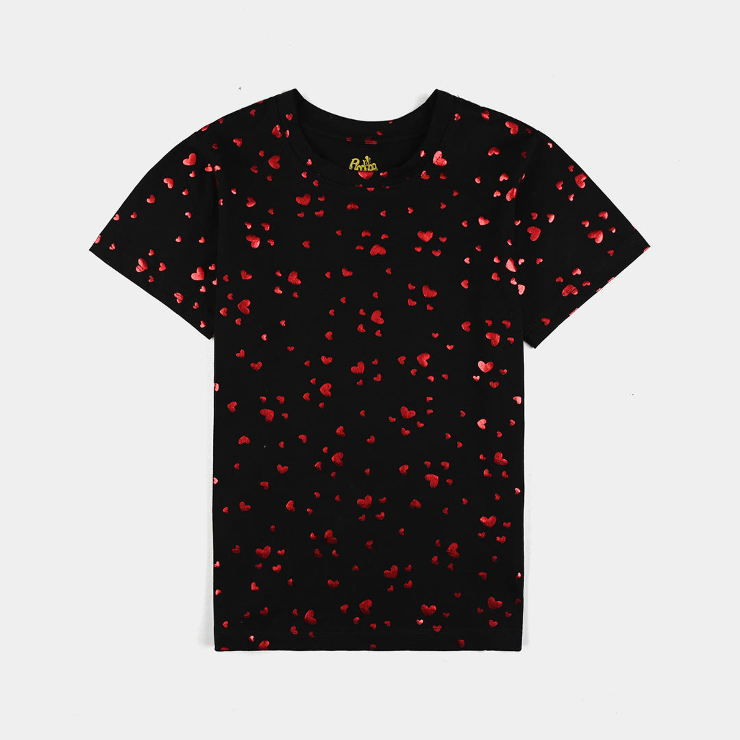 Girls Lycra Jersey T-Shirt H/S Red Heart-Red