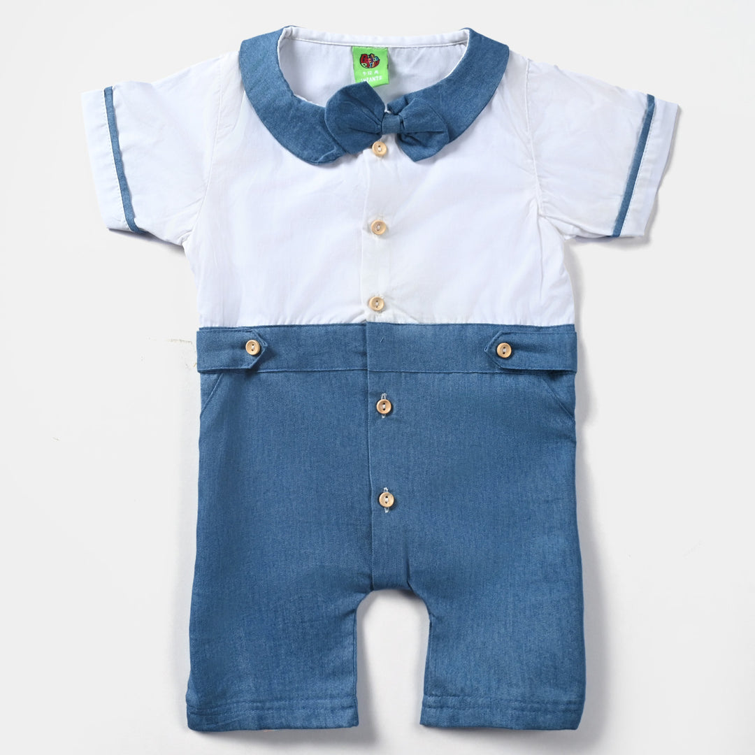 Infant Boys Tensile Denim (Light Denim) Romper Bow-R.Blue