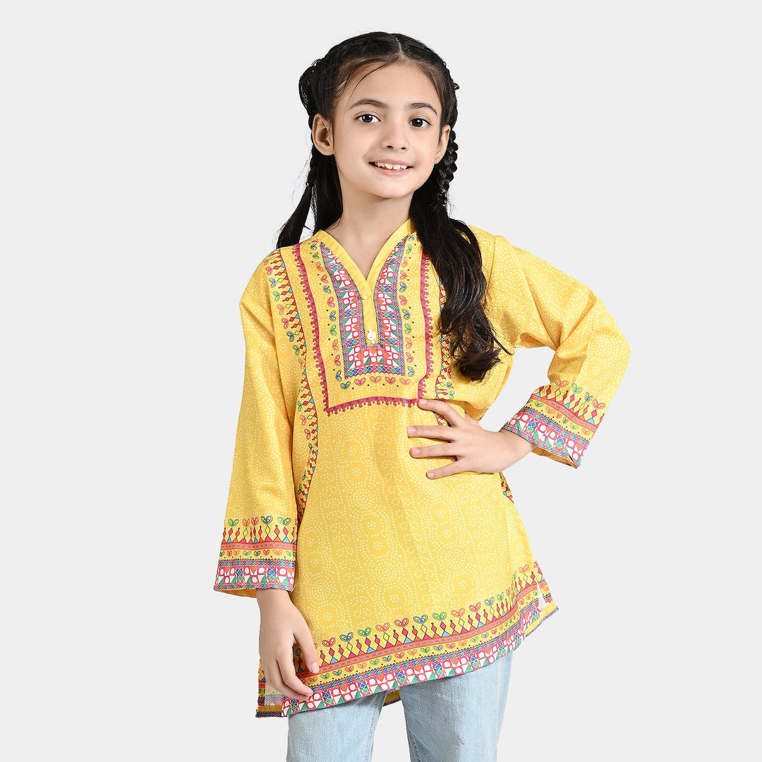 Girls Poly Lawn Printed Kurti Vibrant-Yellow