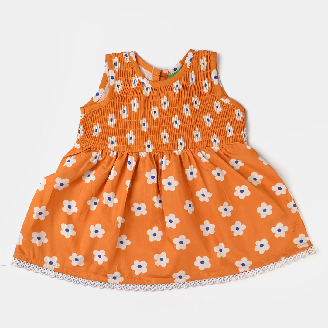 Infant Girls Cotton Poplin Casual Frock Kids Flora-Mustard