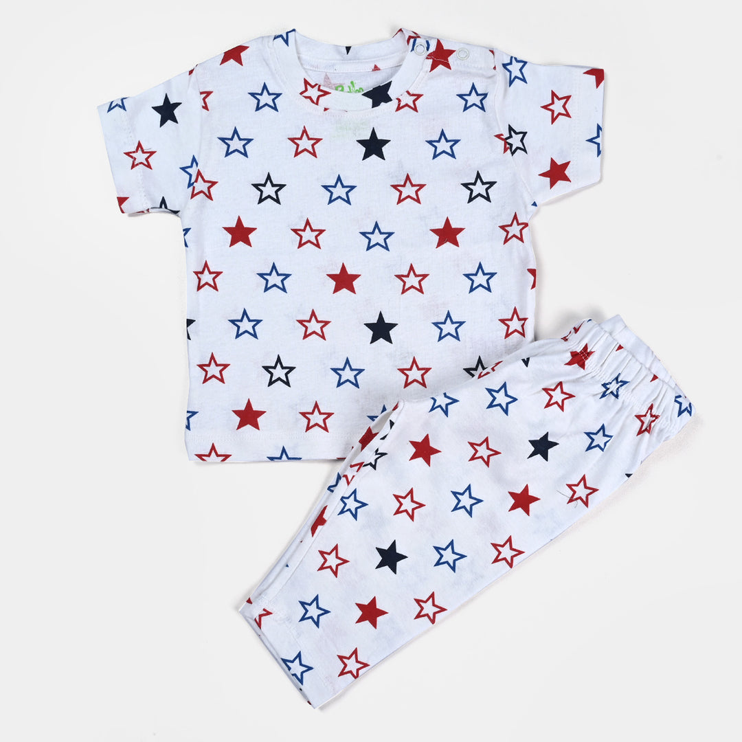 Infant Boys Jersey Knitted Night Suit Multi Star | White