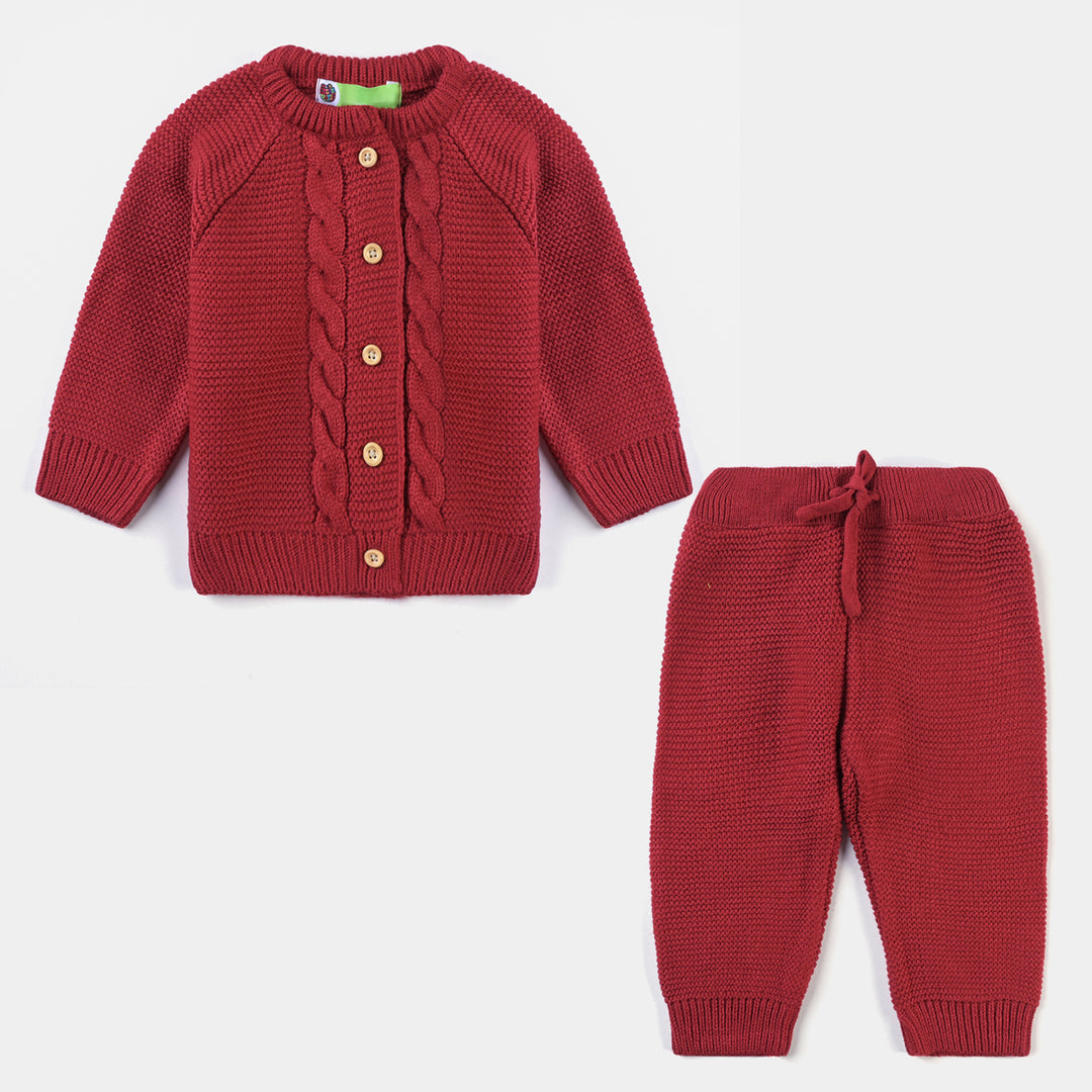 Infant Girls Sweater knit 2PC Suit Celtic Cable-Red