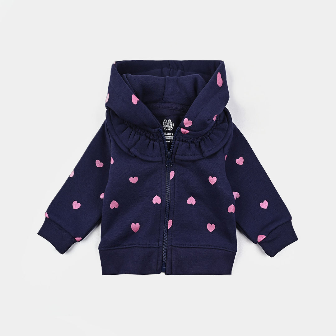 Infant Girls Fleece Knitted Jacket Hearts-Navy Blue