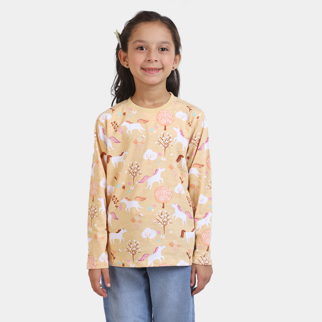 Girls Cotton T-Shirt F/S Character-Light Beige