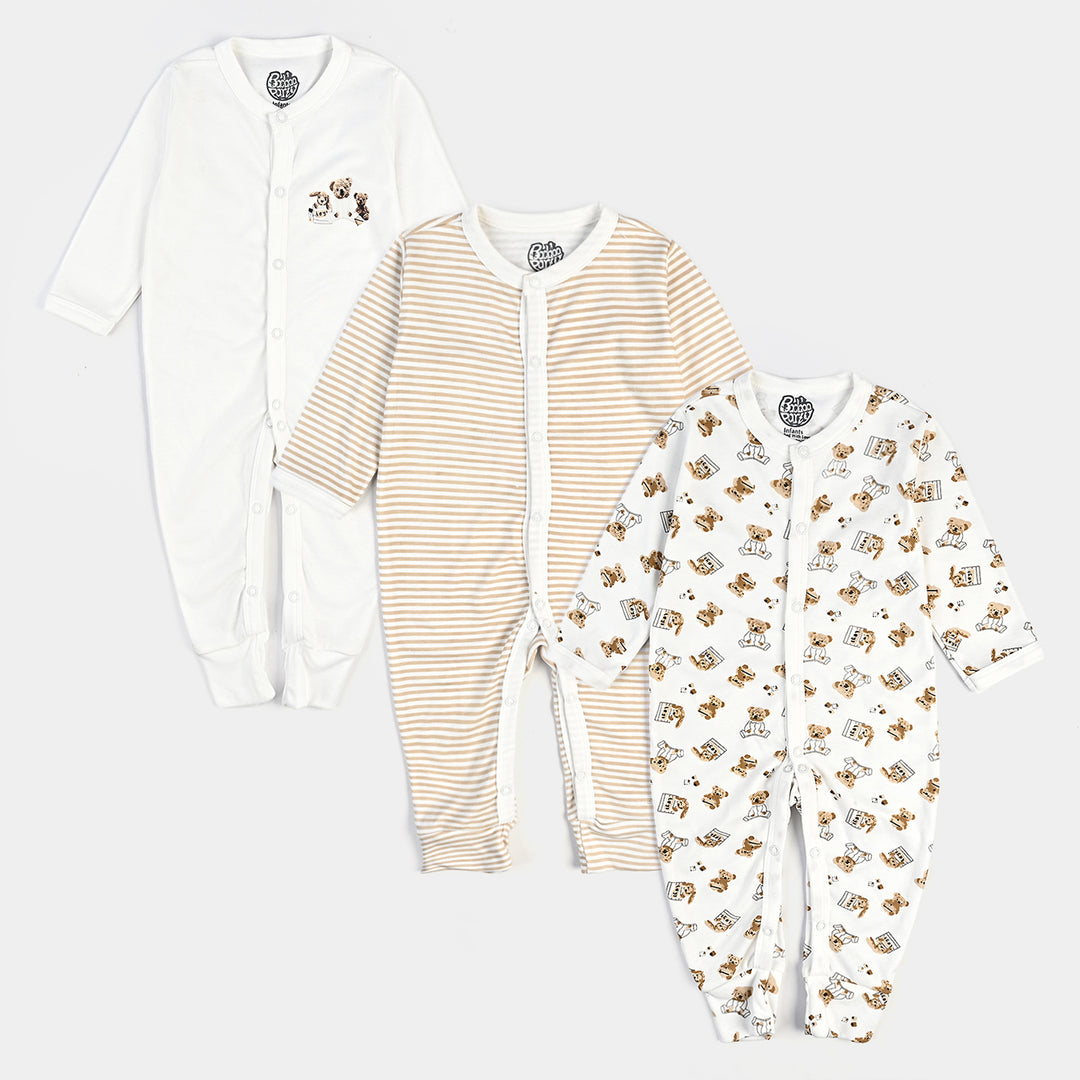 Pack of 3 Infant Unisex Cotton Rompers Bear-Off White
