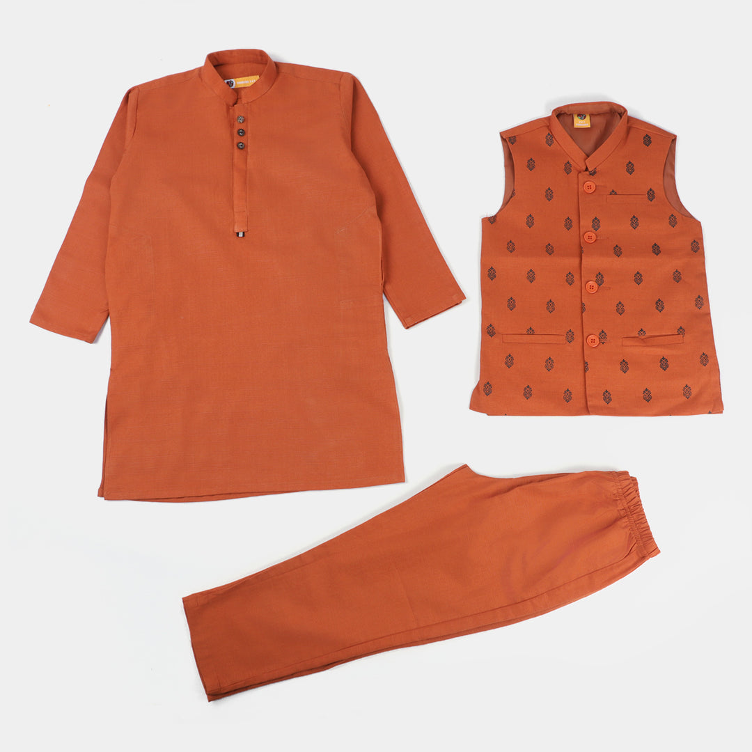 Infant Boys Cotton Shalwar Suit (Dashed EMB)-Mustard