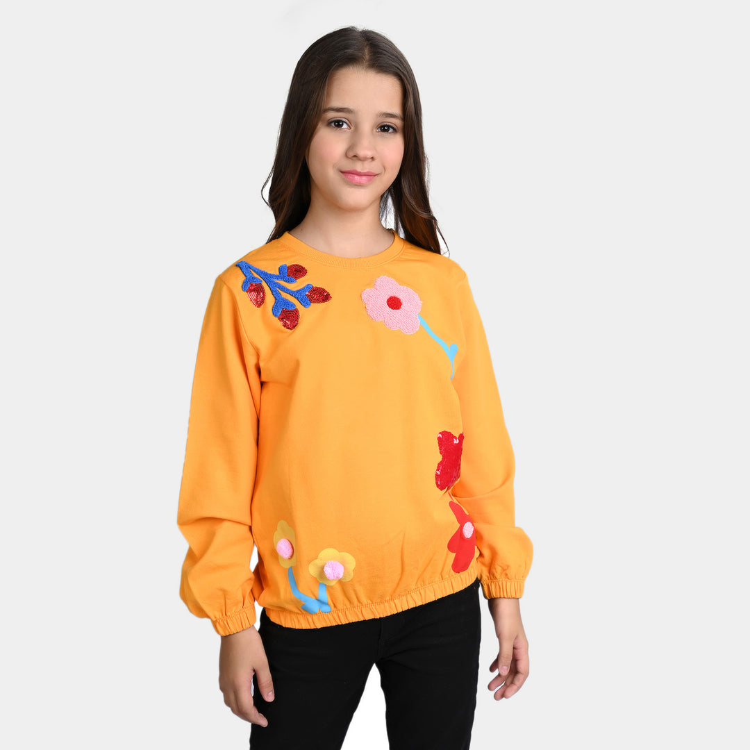 Girls Cotton Terry Sweatshirt Flowers-R.Yellow