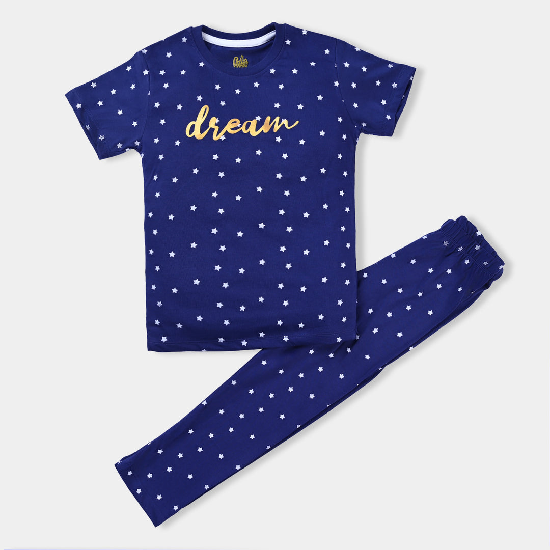 Girls Jersey Knitted Night 2PC Suit Dream | NAVY