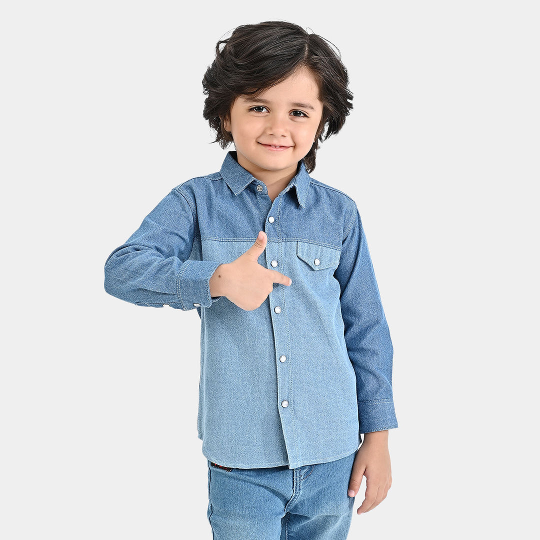 Boys Denim rigid Full Sleeves Casual Shirt-Blue