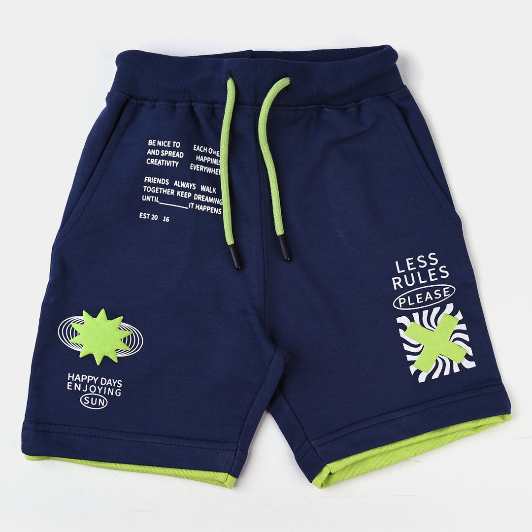 Boys Cotton Terry Knitted Short Less Rules-True Navy