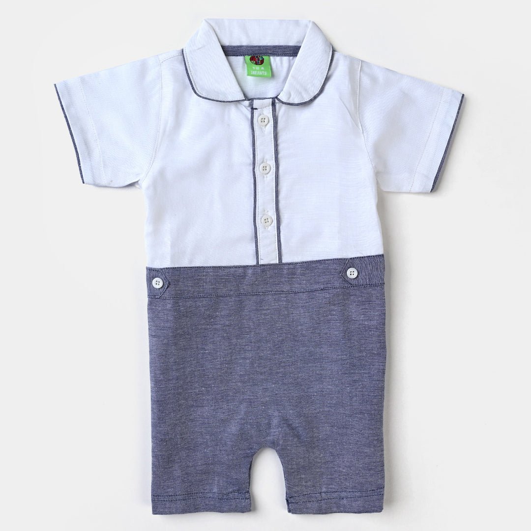 Infant Boys Oxford Romper Contrast Texture - White/Grey