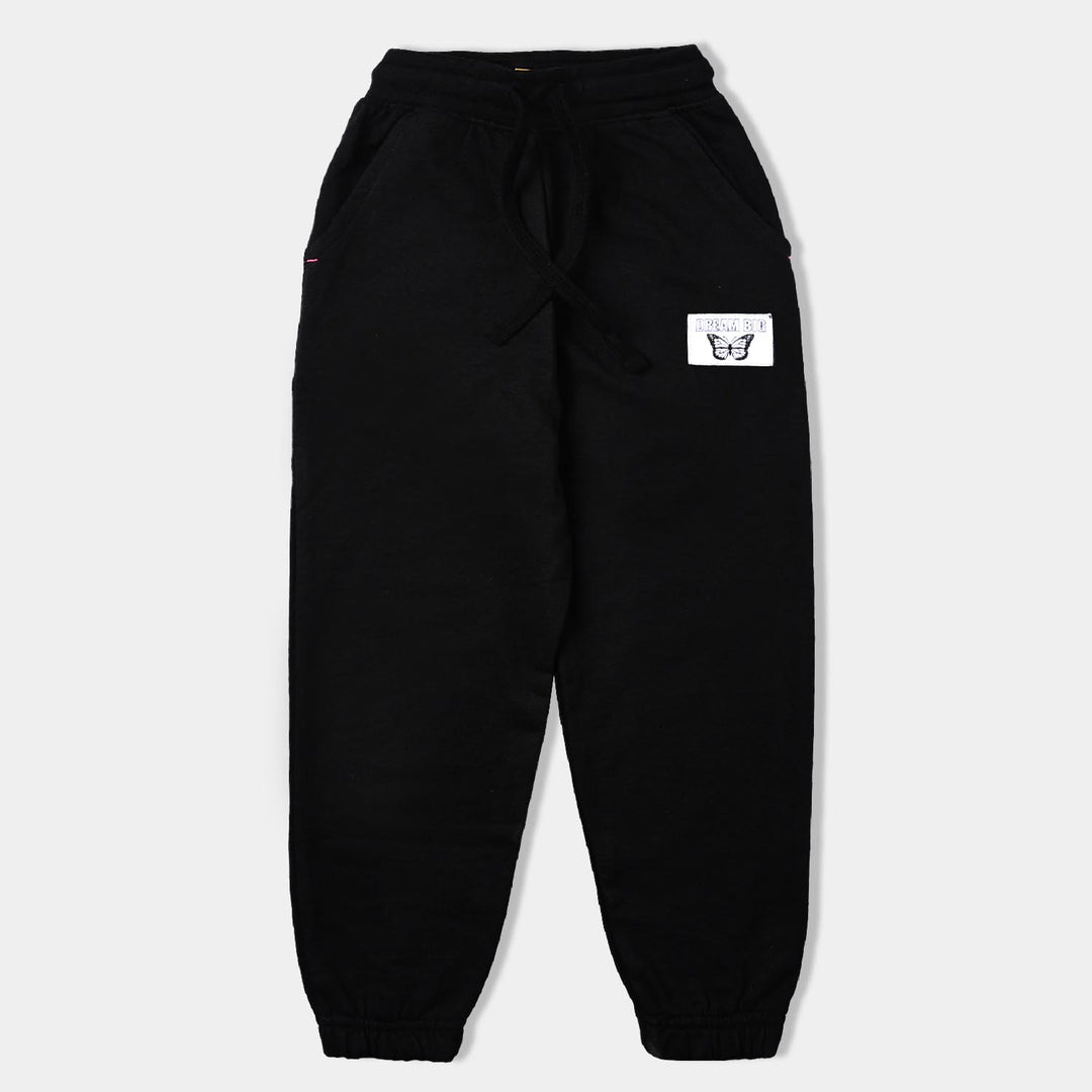 Girls Jet Black Terry Pyjamas Butterfly-Jet Black
