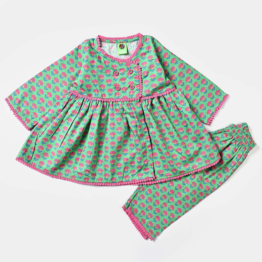 Infant Girls Cotton Poplin Printed 2Pcs Suit-Green