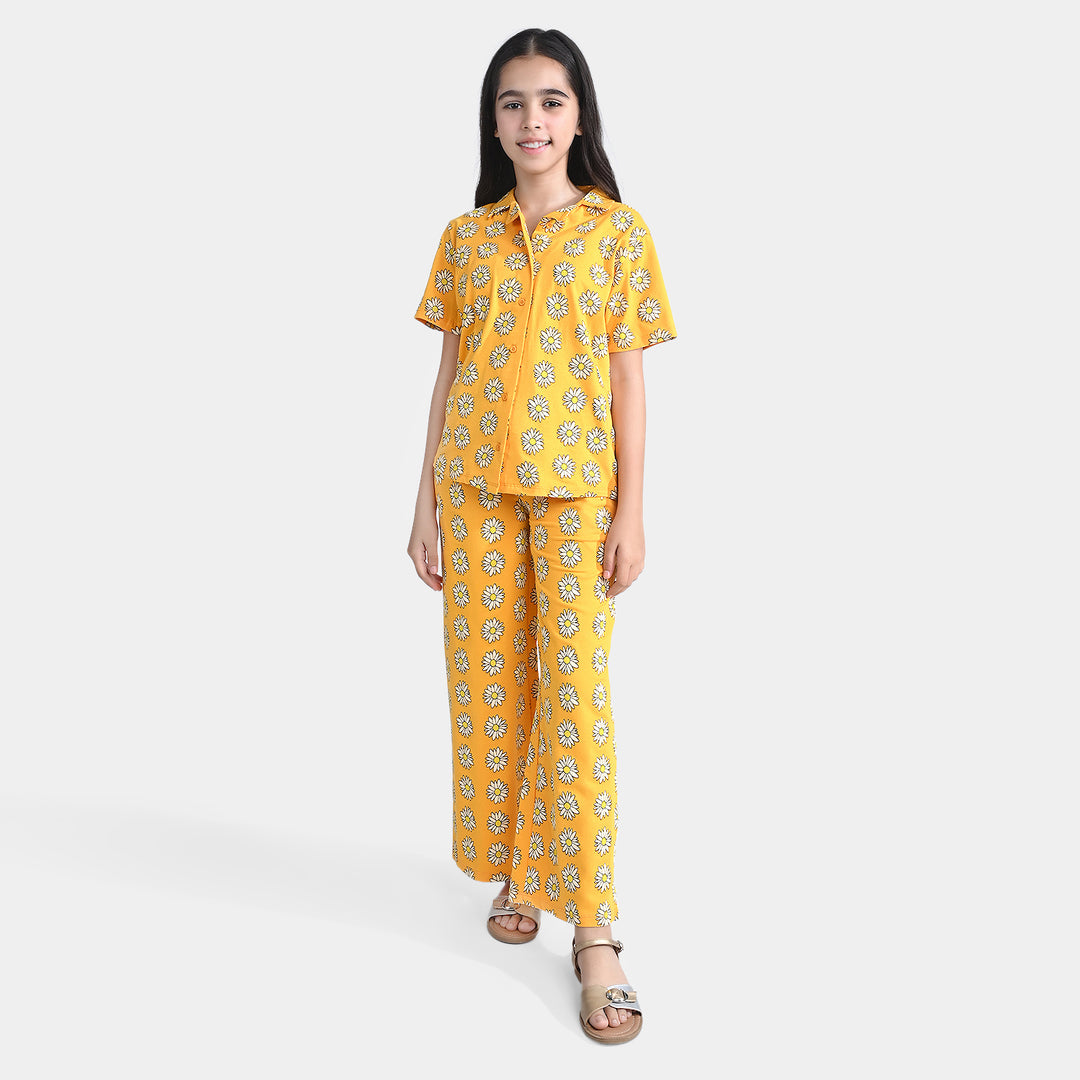 Girls Poly 3PCs Fancy Suit Gul-e-Nasreen - Mustard