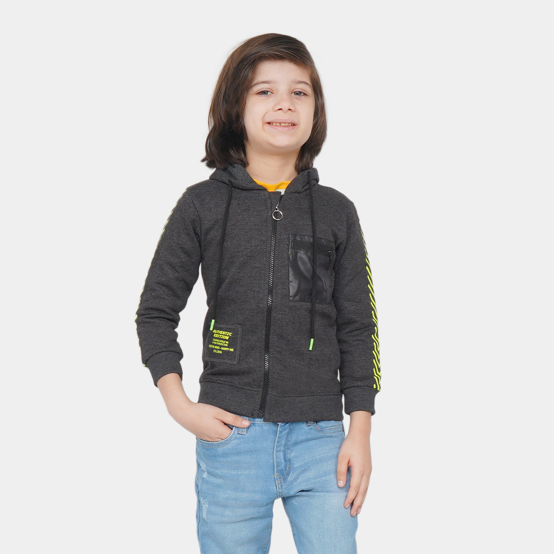 Boys Hooded Knitted Jacket Reflective - CHARCOAL