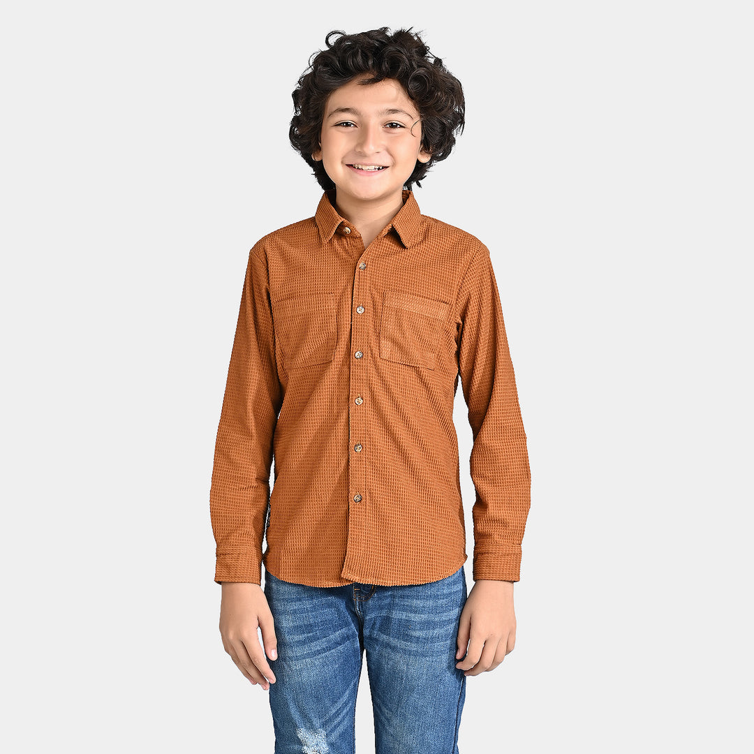 Boys Corduroy Casual Shirt F/S (Here comes fun)-BROWN