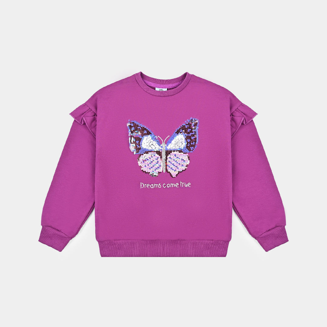 Girls Cotton Terry Sweatshirt Butterfly-Purple