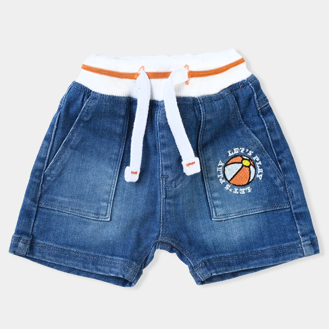 Infant Boys Denim rigid Short Lets Play Ball-Mid Blue
