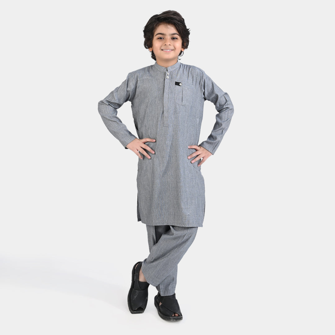 Boys Poly Viscose Shalwar Suit (Front Pocket)-GREY