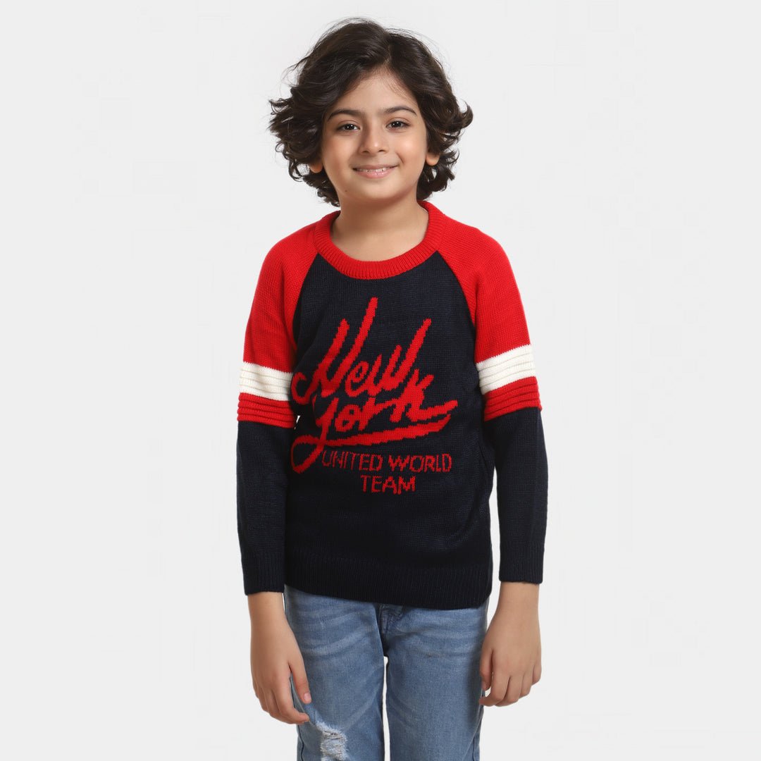 Boys Acrylic Full Sleeves Sweater -Navy Blue