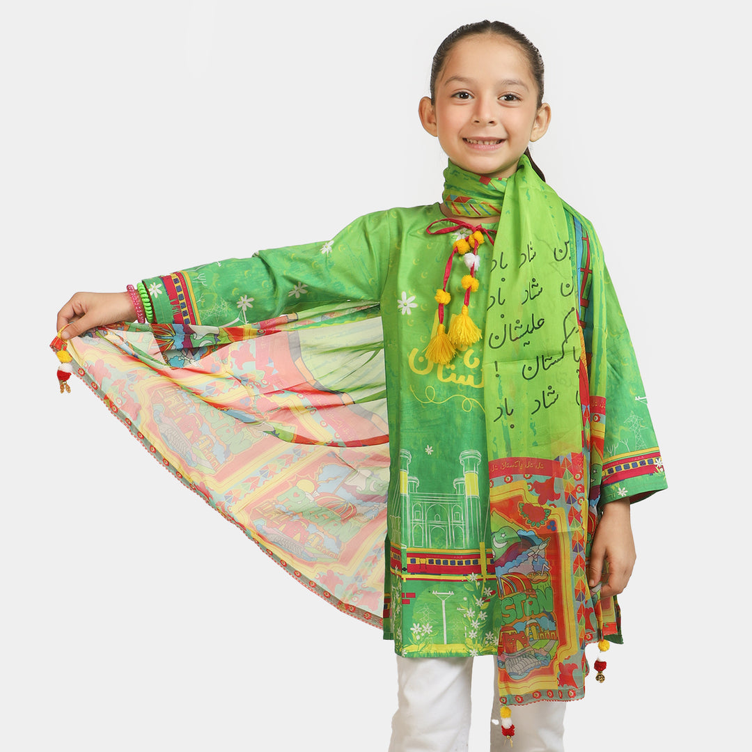 Girls Cotton 2PCs Suit Noor-e-Dill - Mint Green