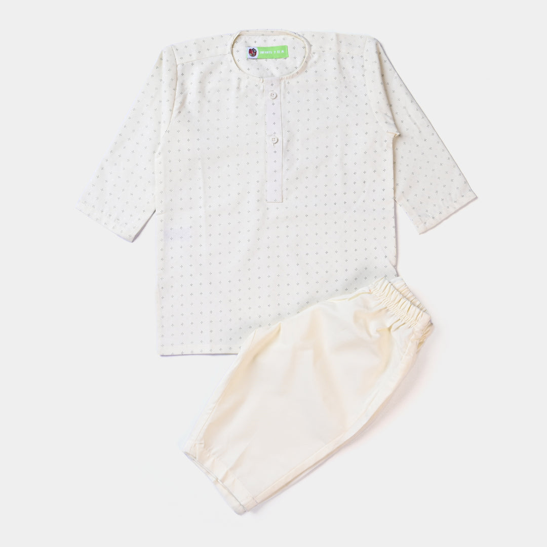 Infant Boys Poly Viscose Basic Suit (Dots)-Off White