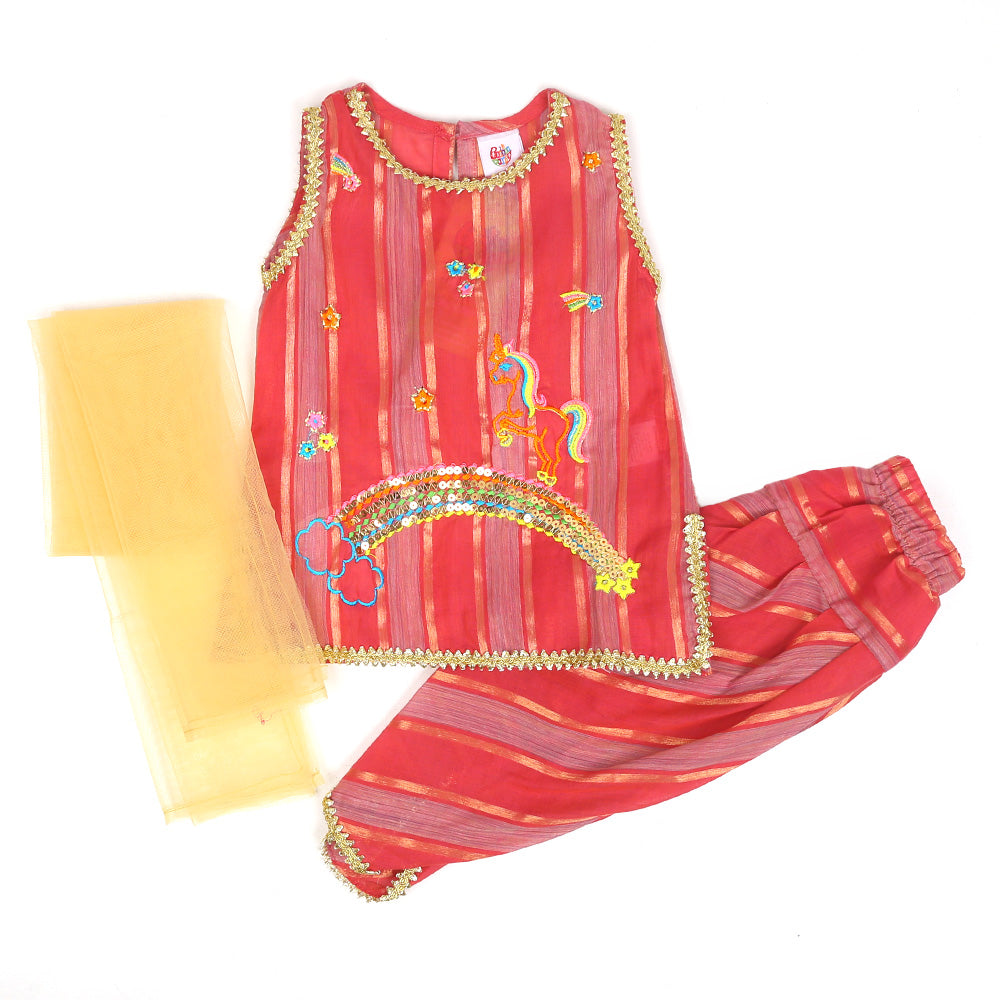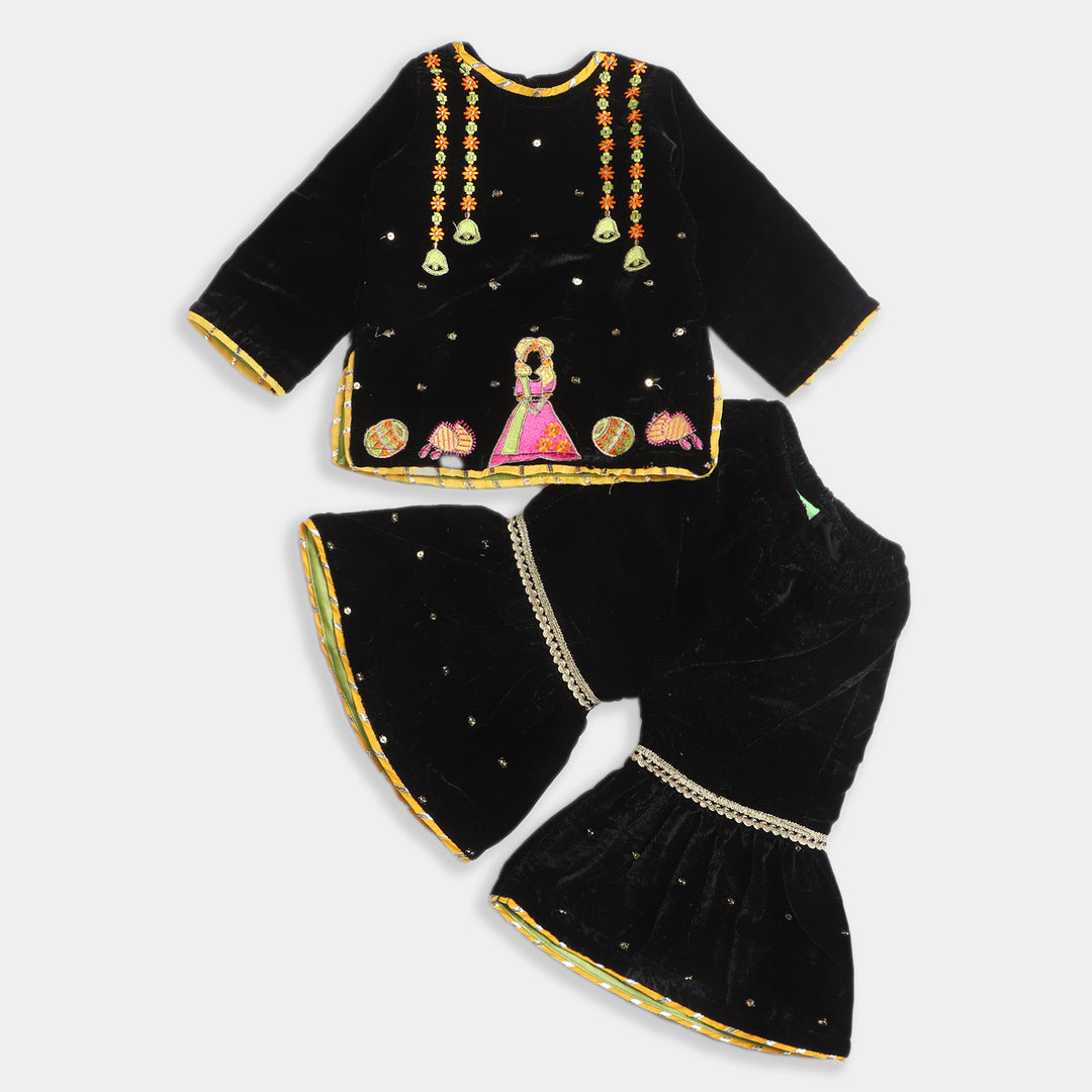 Girls Chiffon 2Pcs Suit Sheesha Black - BLACK