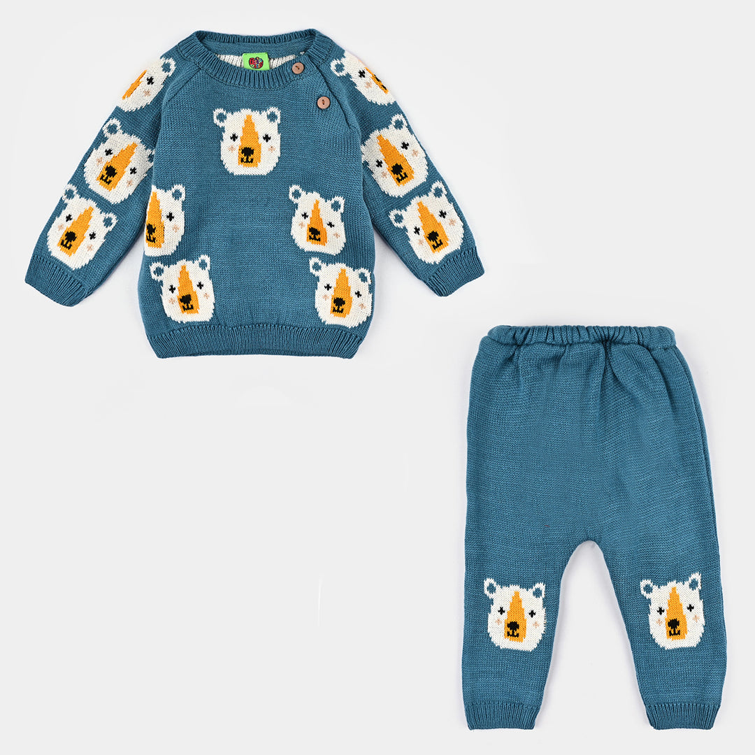 Boys Popcorn Knitted 2 Piece Surf-Mosaic Blue
