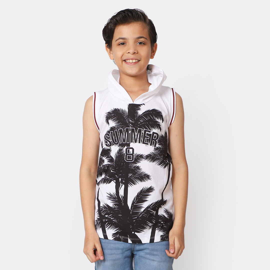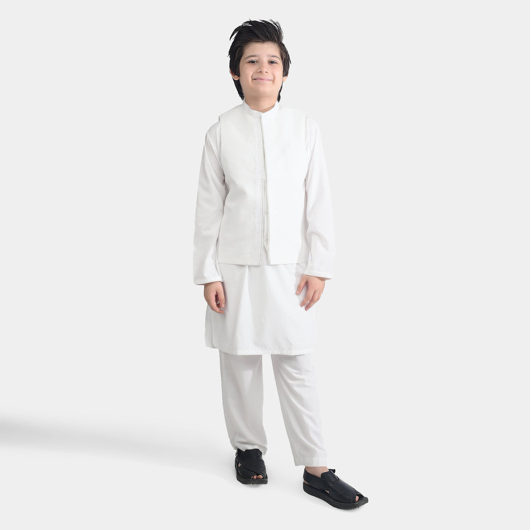 Boys Poly Viscose Waistcoat (Self Textured)-BLACK