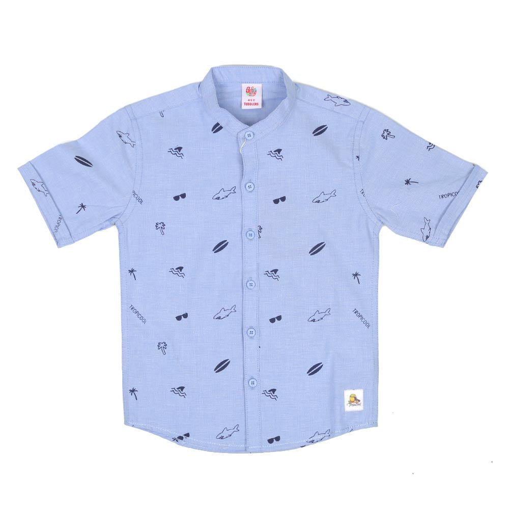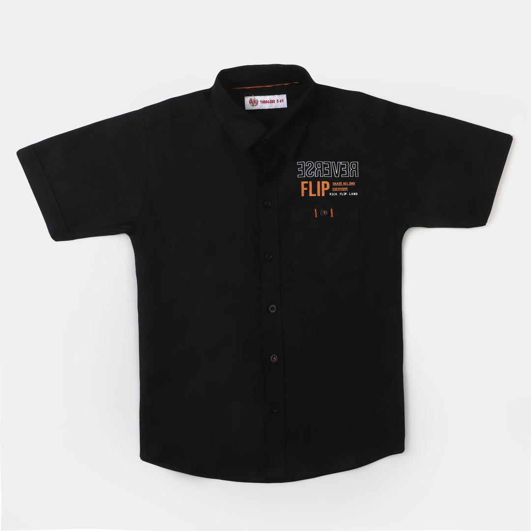 Boys Yarn Dyed Casual Shirt Follow The Waves-BLACK