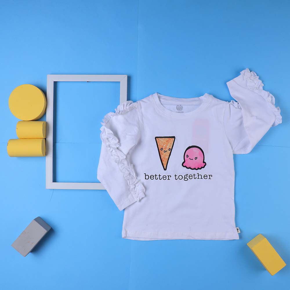 Girls Cotton Jersey T-Shirt H/S Best Vibes-White