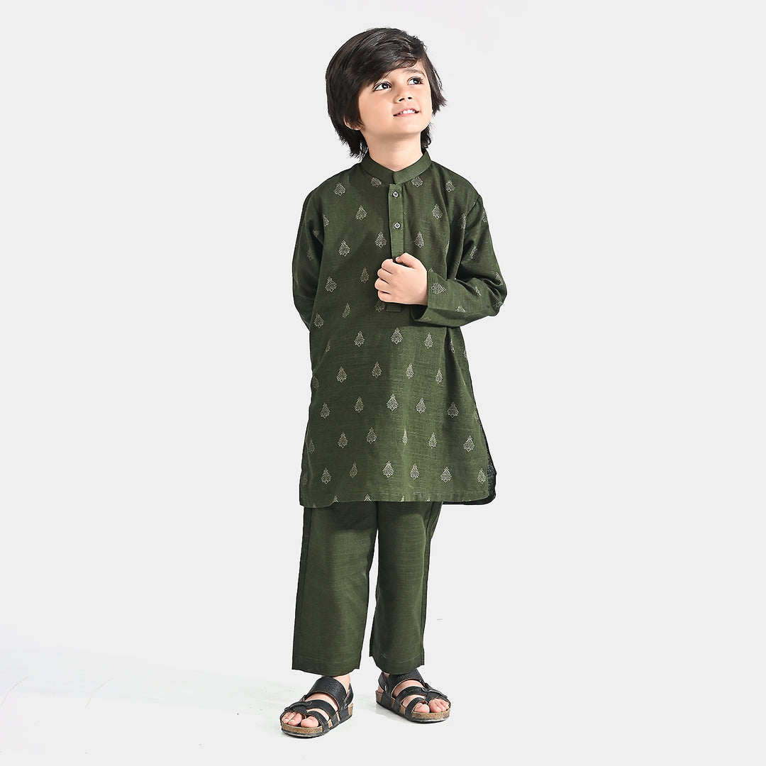 Boys Cotton Slub Shalwar Suit (Monotone)-Green