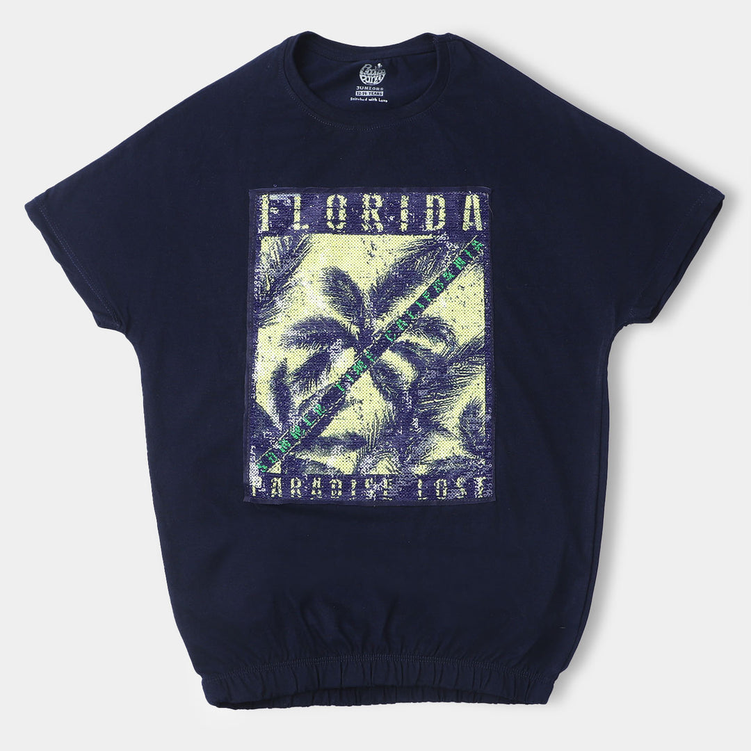 Girls Cotton Jersey T-Shirt H/S Bff Vibes-Turquoise