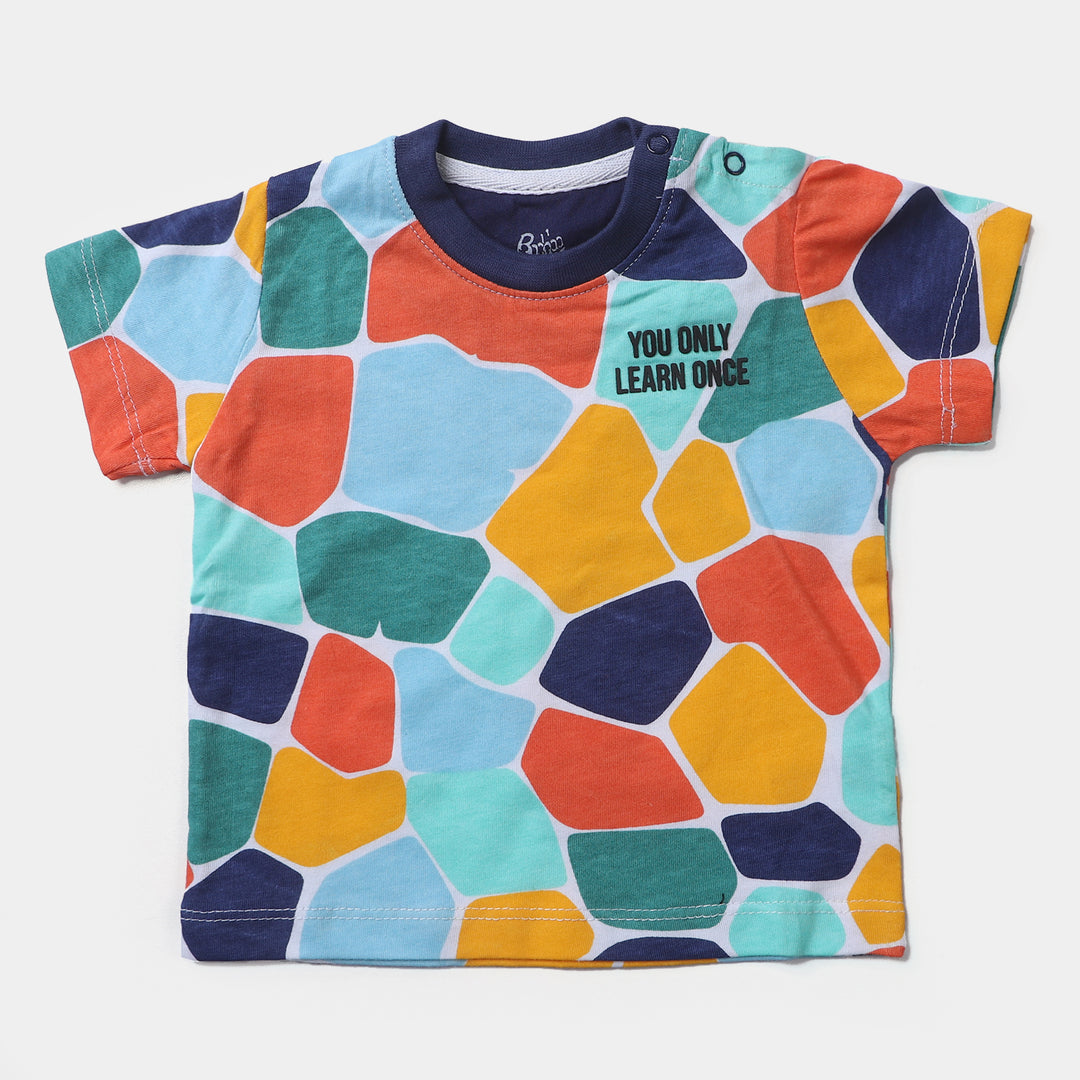 Infant Boys Cotton Terry Round Neck T-Shirt Color Mosaic-White