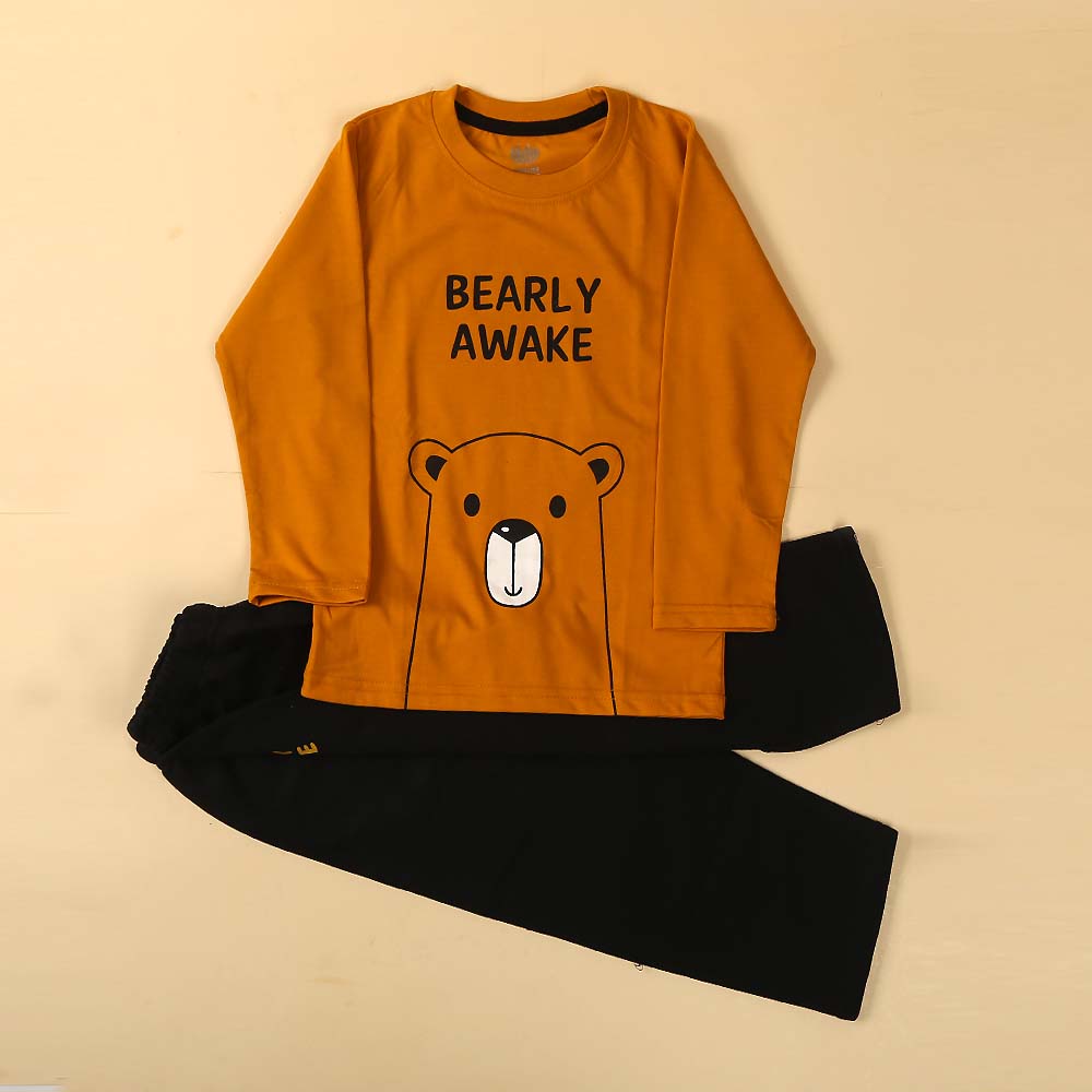 Bearly Awake Night Suit For Boys - Saffron (030)