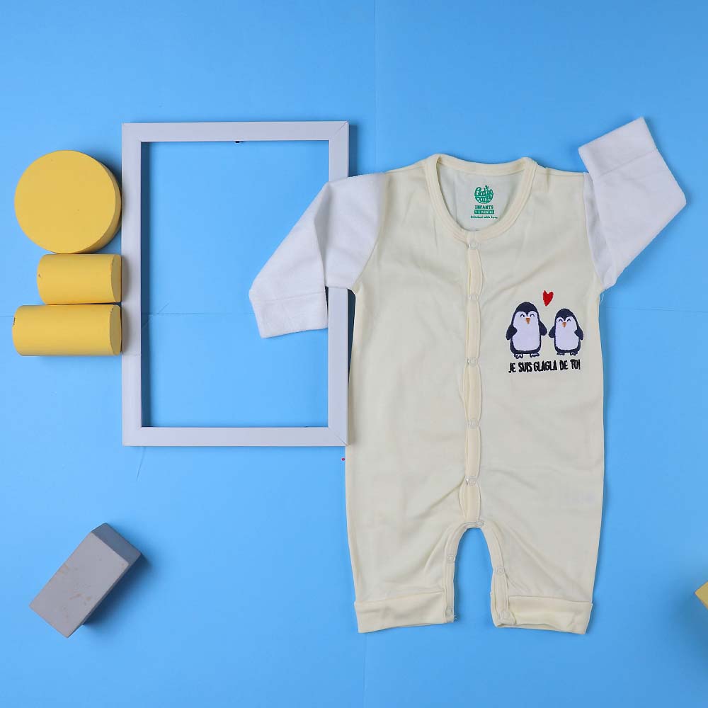 Infant Boys Cotton Interlock Romper Pleated Style-BROWN